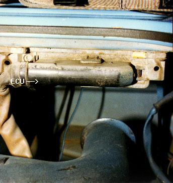 The electronic control unit, or ECU, is the brain of the fuel injection system. It is a silver-colored box, mounted in various locations on different models. One way to find it is to follow the fuel injection wiring harness as all wires lead to the control unit (terminating in a large plug on the unit). In the Vanagon, the ECU is mounted in the engine compartment on the right side, close to the right taillight assembly. In the Bus, it's mounted in the engine compartment, immediately forward of the battery. In the Beetle and Super Beetle, it's mounted in the rear luggage compartment.