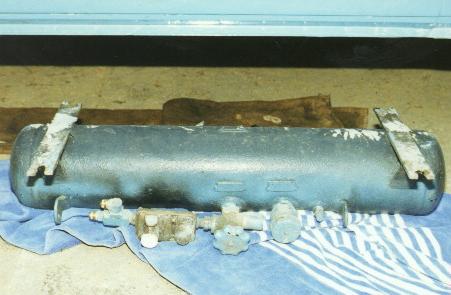 The photo above shows the new valve installed on the tank. The yellow stuff is teflon tape, used to help seal the threads.