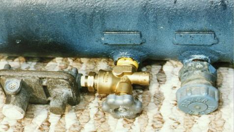 The first step is to make sure the tank is empty or else the service guy will get a surprise when he removes the old valve. You can either use up all the propane that's in there (which is what I did) or vent it in a safe area. The venting idea makes me nervous, so I just used up the existing propane.