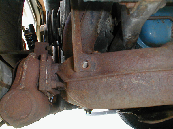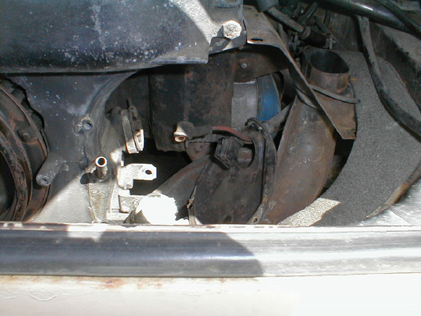 OK now you've almost got this thing out. Crawl under again and look up near where you removed the nut from the lower alternator mounting bolt. Near there is the phillips screw for the clamp that clamps the cooling boot to the alternator. Loosen this screw up. I found it was easier to get the screwdriver in there if I removed the lower cylinder tin under the car.