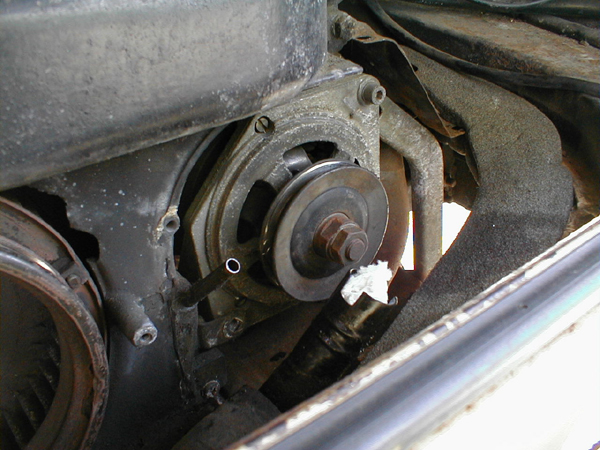 Now pull that tin piece off as well as the plastic ring around the alternator that's behind the tin. If you are missing the plastic ring, you should get another one. It helps to seal around the alternator. If you don't have it, your engine could be running hot.