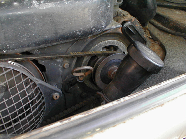 First thing you want to do is get the belt off. So, undo the screws that hold the fan screen and timing scale on. Pull off the fan screen and timing scale and the 3 screws and set them all aside. Now pull the plastic plug out of the slot in the tin for the alternator adjustment. Get your 6mm allen socket out and loosen the alternator tension adjusting bolt. Push the alternator over to the left to slacken the belt and remove it. If you can't quite get it off, get it started and then crank the engine backwards, that will get it right off. If the belt is looking ratty, what better time to replace it?