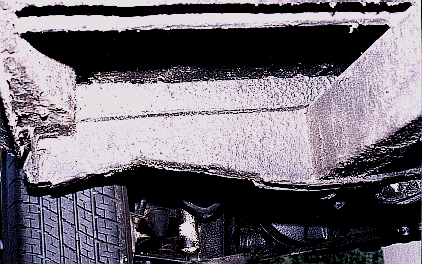 I think it took me about 15 seconds to write the words "I took the opportunity to undercoat the entire van twice with Kool Patch". It took however, an eternity to undercoat that van. You will recall the consistency of Kool Patch is roughly that of Chocolate Pudding with fiberglass threads in it, just like Gramma used to make. Imagine for a moment the Sisyphusian task of spreading chocolate pudding across an irregular surface interrupted by projecting and overhanging immovable obstacles, while laying on your back on hot asphalt in July in Northern Virginia.