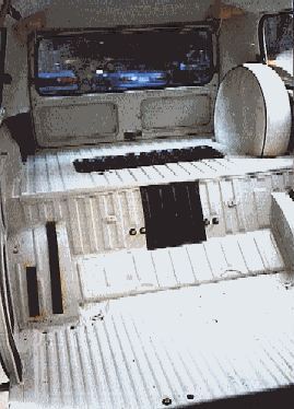 For the sake of drawing, it would appear that our floors and walls are now 6" thick. Not the case. In fact, those of you who have seen this bus (at Buggout, etc.) can testify, you cannot see tell tale signs of this insulation, only a nicely upholstered interior. The clue comes you slam a door, and hear the solid, "thunk", or ride down the highway, and talk in conversational tones at 70 mph.