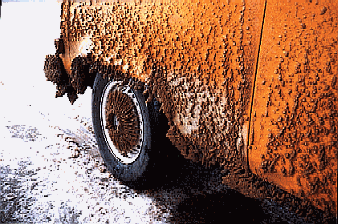 We undercoated the interior primarily to prevent rust. We have all seen how much condensation forms on the windows while driving or camping in the winter; that same condensation can form on the inside walls too. Further, it was possible that moisture could accumulate in the insulation (from a spill, rain leakage, etc) and rust through the body. The Kool patch virtually eliminates this possibility. It furthers the noise-damping in the body, too.