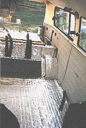 Next, the retainer panel in place for the above items, and hinged counter-top/bed base installed |