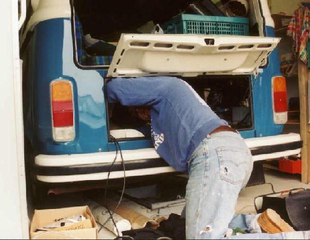 Photo below: Overview with Westy couch/hinges in place.