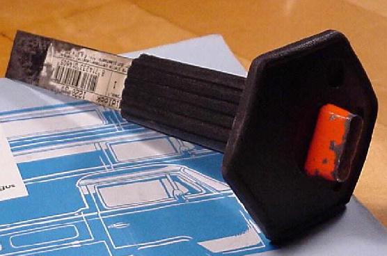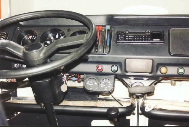 I had to drill the hole for the stock switch. Again I drilled a smaller hole and filed it to size, taking care it would line up properly. If you have a padded dash, you have to crawl under your dash and check the backside where the corresponding hole is pre-cut. On my plain-metal dash I had to carefully measure out (anybody got a decent padded dash for my '76 out there?? EMail me!) and cut the hole. Because I had the wiring loom from the switch to the fusebox this went pretty smoothly. I only had to install one wire from the front to the heater for the starting up sequence; this took some time to install neatly. It took me approximately 6 meters of cable to complete the job.
