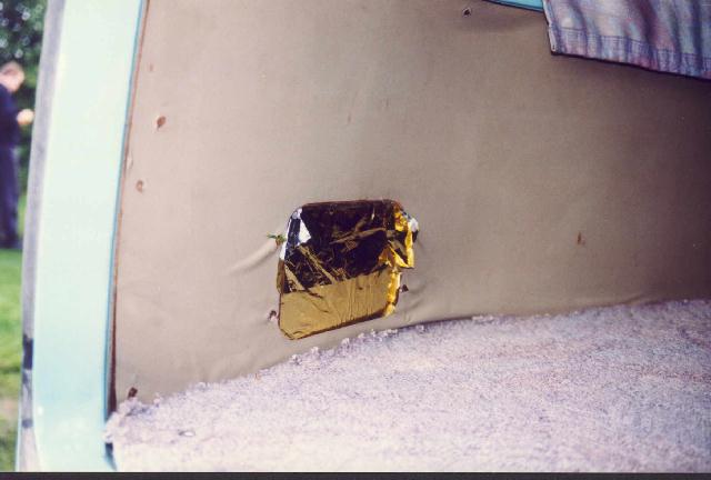 Photo shows the location of the fresh air intake from a parts donor bus (grille opening now blocked by insulation):
