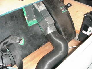 Although I had also templates for the heater mounting bracket, I only used them as a reference. I first mounted the ducting next to the tank and connected the temperature-regulating switch. Make sure that the tank compartment is sealed off decently when everything is in place. For this I used an old bicycle tube which I cut to size and glued with clear silicone. Silicone swells up when it comes in contact with fuel. Nice characteristic I think... I used stainless steel screws in all the original holes. There are not that many screws anyway, so using all the possible mounting points seemed like a good thing to me. One screw kept me busy for about two hours; it was located on the firewall's end on top of the duct. With the engine in this was difficult to get a grip on. But I doubt if things would improve if the engine were out.