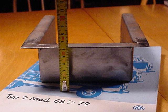 Some digging in the trash container at my VW dealer (who is also a VW nut) revealed that some used Golf exhaust tubing virtually matches the old diameter of the (thinner) upper part. I used a straight section which comes from the part between the cat and the muffler. With an angle grinder and a hacksaw I cut it to the required length.