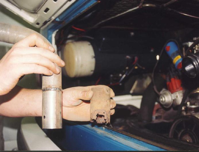 Photo below: Preparing the Golf tubing to accept the Eberspaecher version.