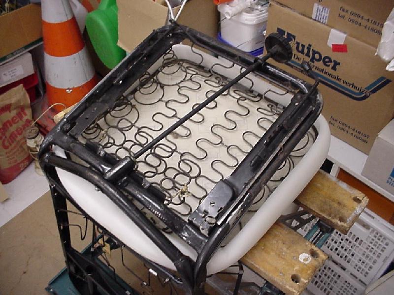 The cross brace you see in the backrest is the frame for the headrests, they can be transplanted from a donor chair. But thats another story and concerns mostly us Europeans, so if you got questions about this email me. For long time readers; note the green crate on the right top, this is my fuel heater parts bin(see "heating" in the Type 2 library)